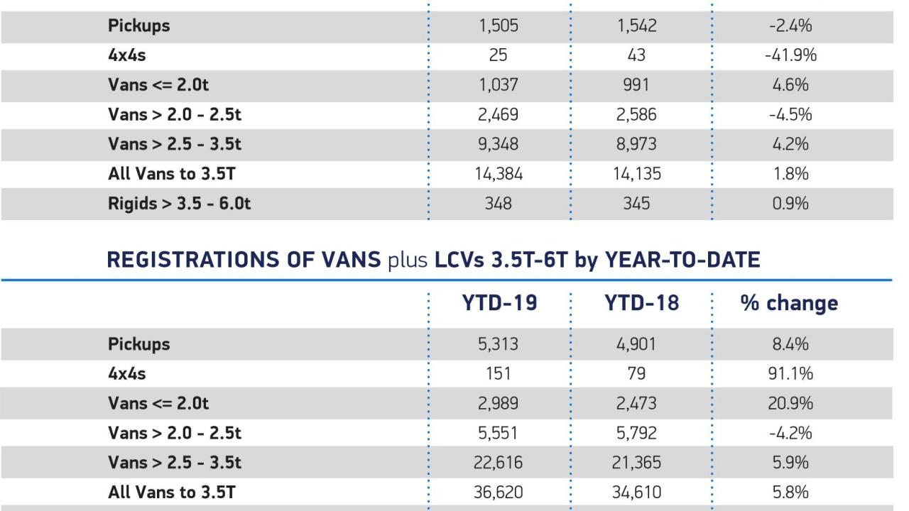 Year-to-date, 36,620 new LCVs have been registered, representing a rise of 5.8% on the first two months of 2018.