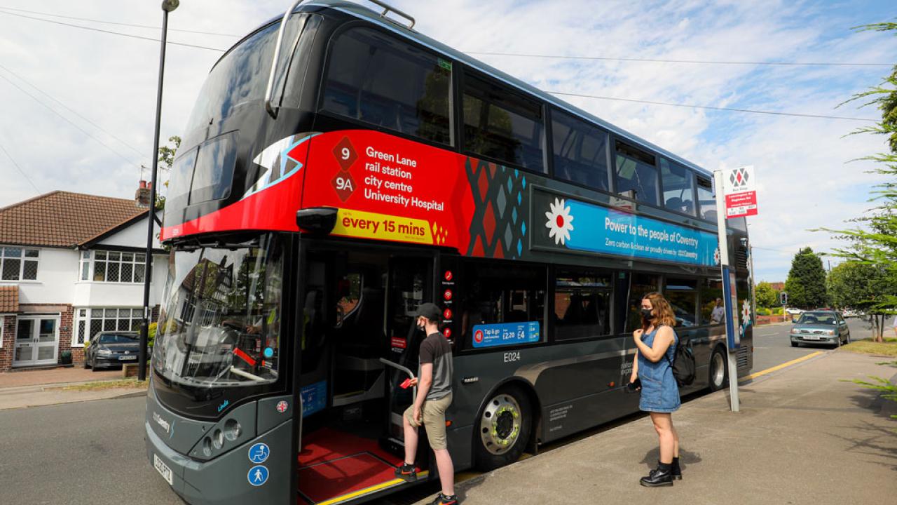 Image shows electric bus in Coventry. Photo credit: National Express West Midlands