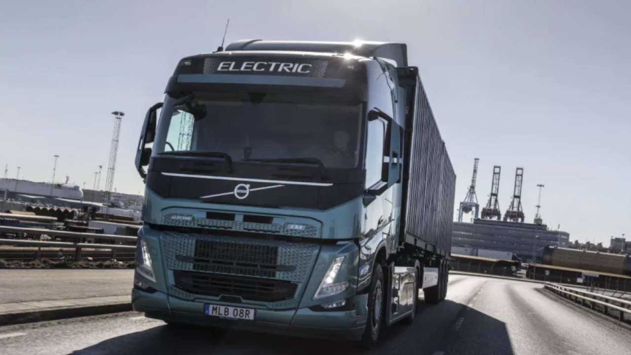 Image shows Volvo electric truck.